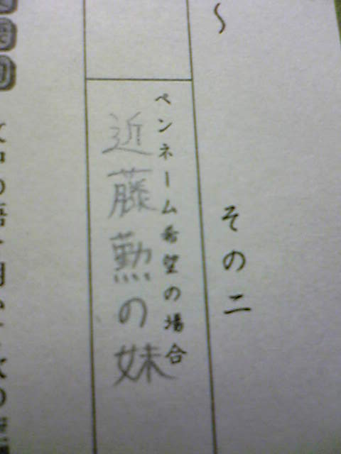ペンネームが書けるらしく、近藤勲の妹、と宍戸亮の妹で10分くらい悩みました(笑)