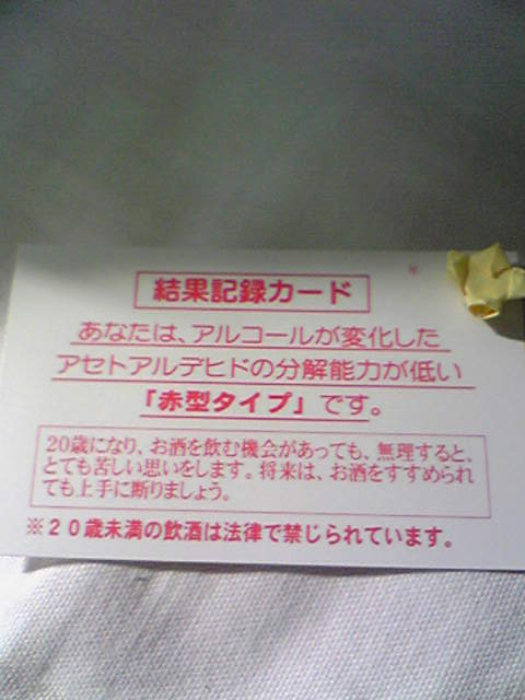 しばらく待って、赤くなったら酒に弱い、白いままだったら酒に強い。